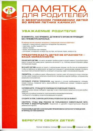 Памятки для родителей о безопасном поведении детей во время летних каникул 26.05.2025 Уважаемые родители, пожалуйста, прочитайте данные памятки ведь они могут сберечь жизнь и здоровье Ваших детей.